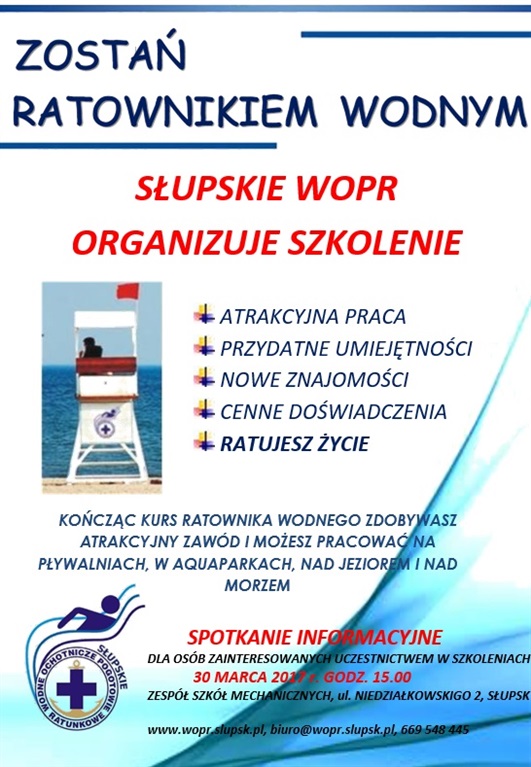 Słupskie WOPR ogłasza nabór na szkolenie ratowników wodnych, zgodne z rozporządzeniem Ministra Spraw Wewnętrznych w sprawie szkoleń w ratownictwie wodnym.